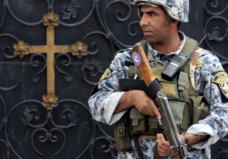 Polícia iraquiano junto a Igreja cristã em Bagdad